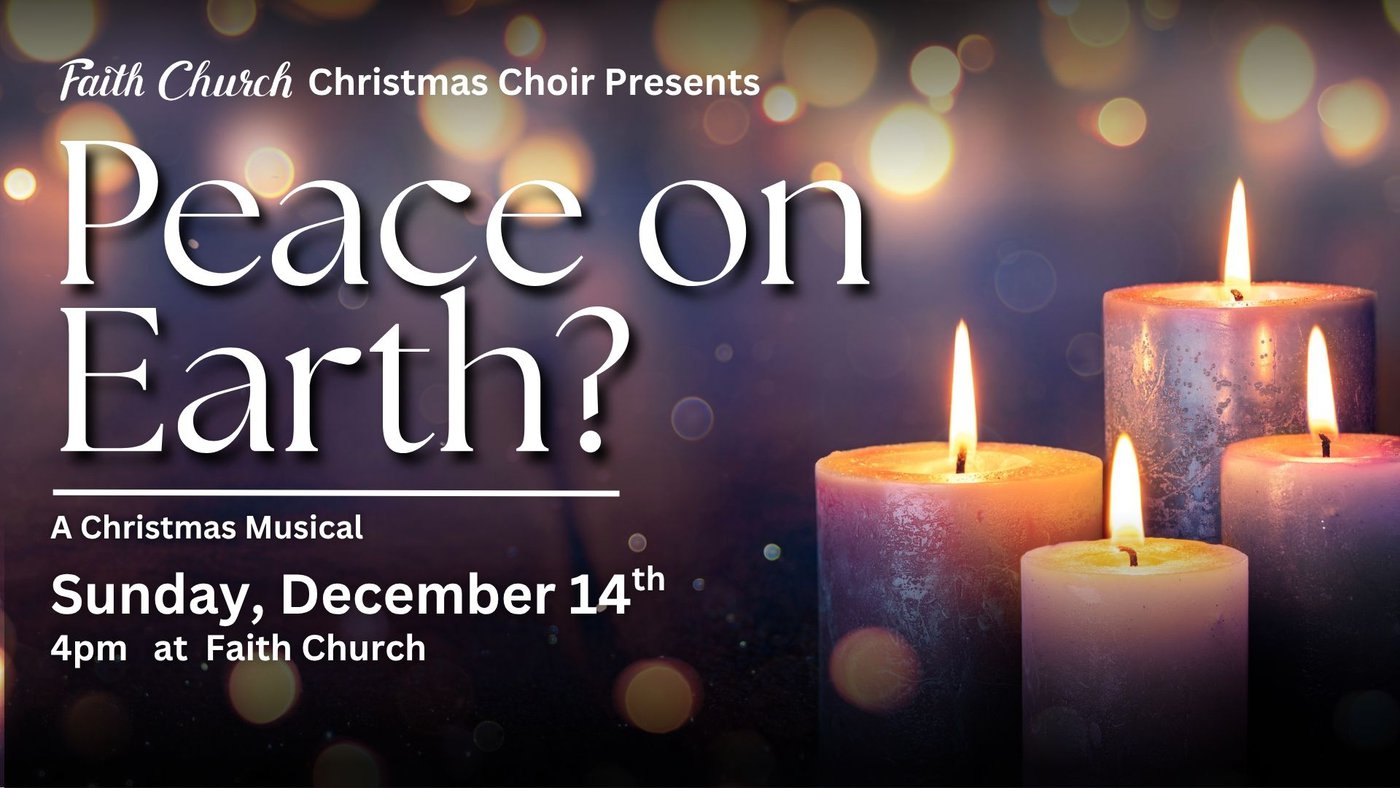 Faith Church's Music Ministry proudly presents its 2025 Christmas Musical performance of "Peace on Earth?" on December 14th at 4pm in the sanctuary of Faith Church. Brought to us by a number of different writers and composers, this musical shares the story of a typical family and how they find true meaning of "peace" in our world. This experience is great for audiences of all ages as we reflect on the unforgettable promises that all started with the birth of a baby boy in a manger.